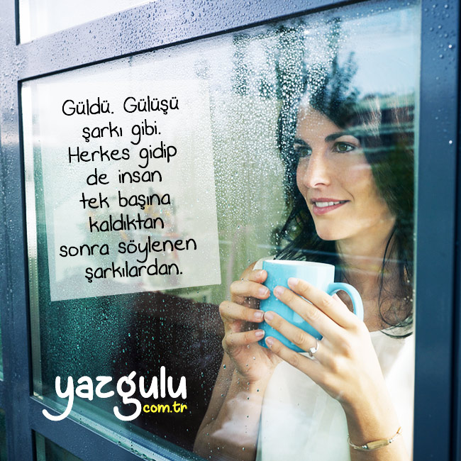 Güldü. Gülüşü şarkı gibi. Herkes gidip de insan tek başına kaldıktan sonra söylenen şarkılardan.