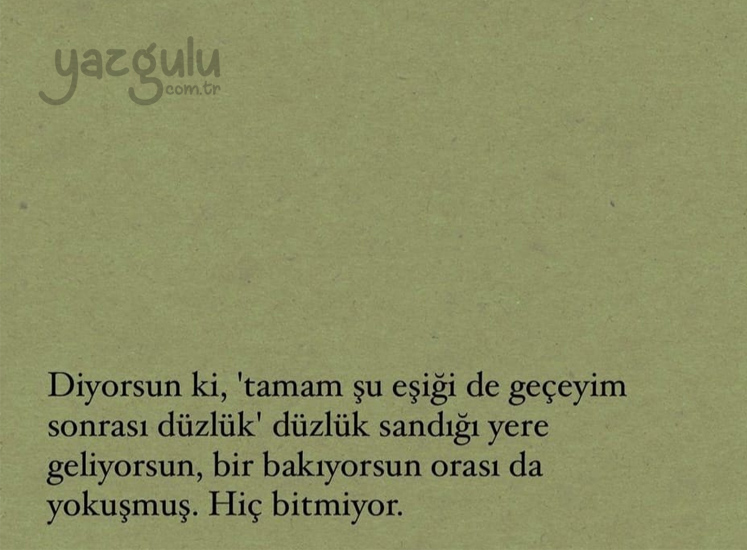 Hiç bitmeyecek olan bir yokuşu tırmanma çabası.. … Yoran yokuşun kendisi değil aslında.. Hiç varmayacak oluşumuz..!