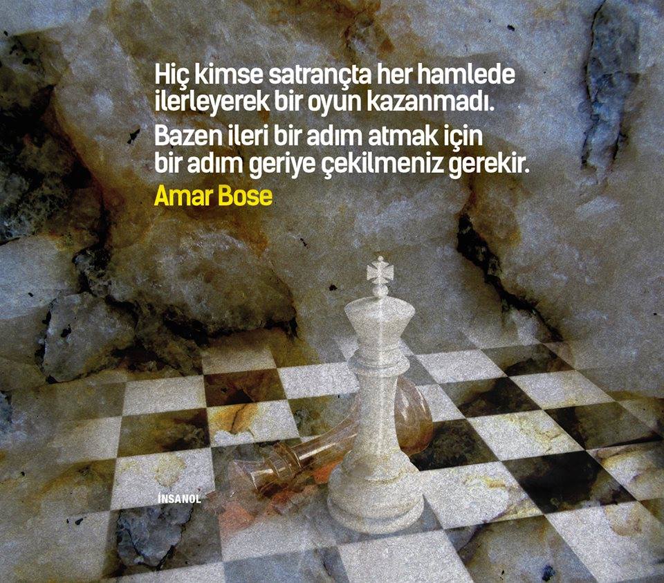 Hiç kimse satrançta her hamlede ilerleyerek bir oyun kazanmadı,Bazen ileri bir adım atmak için bir adım geriye çekilmeniz gerekir,Amar Bose.