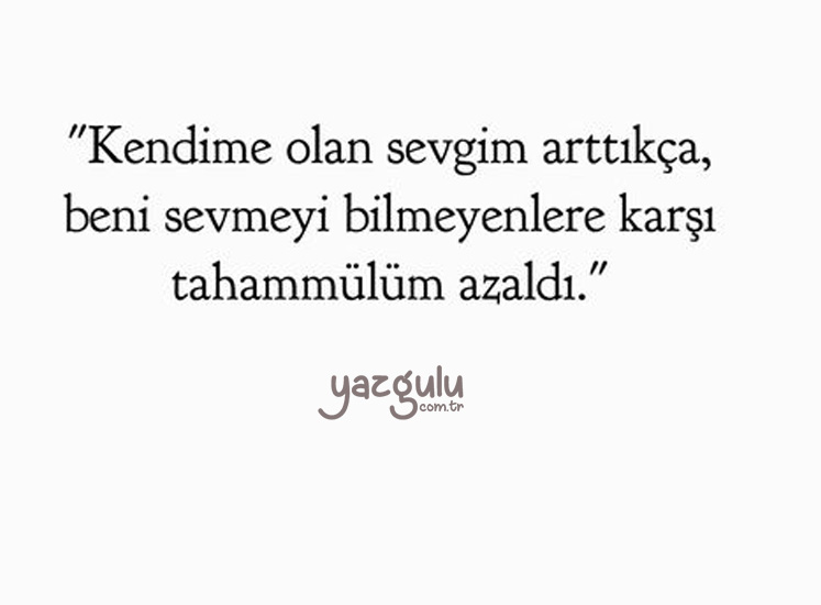 Kendime olan sevgim arttıkça beni sevmeyi bilmeyenlere karşı tahammülüm azaldı.