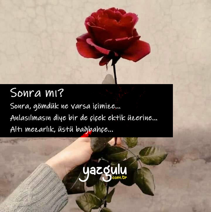 Sonra mı? Sonra gömdük ne varsa içimize... Anlaşılmasın diye bir de çiçek ektik üzerine... Altı mezarlık, üstü bağ bahçe...