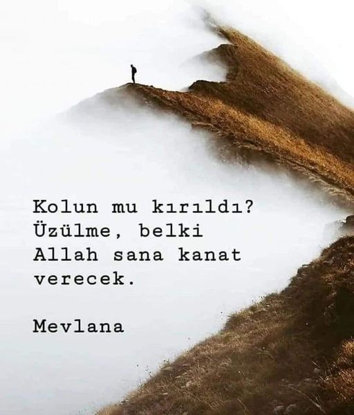 "Kolun mu kırıldı? Üzülme, belki Allah sana kanat verecek." Hz. Mevlânâ.