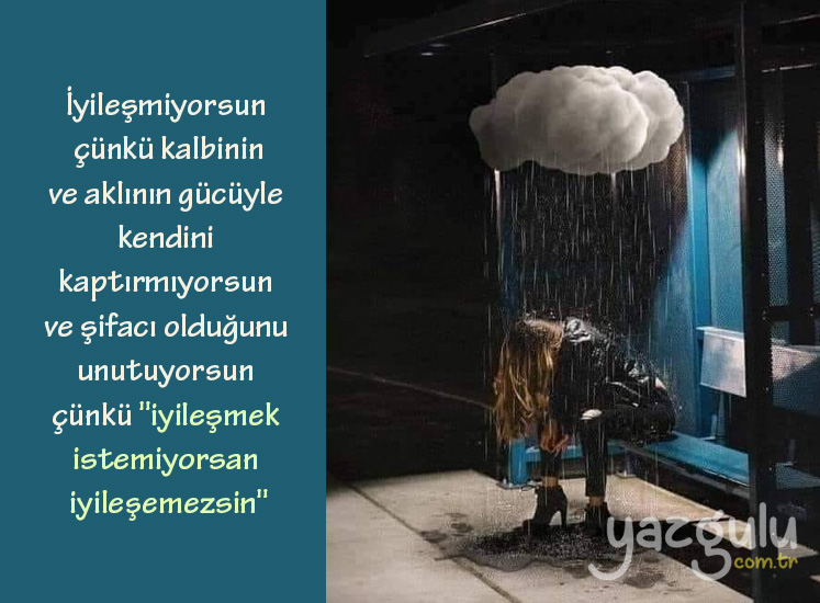 İyileşmiyorsun çünkü hayatına iyi bir şey girdiğinde onu reddedersin ve seni mutlu etmeyen şeyleri almayı tercih edersin. İyileşmiyorsun çünkü içindeki güçlü ve değerli varlığı görmezden geliyorsun. Kendini ihmal etmeye ve dünyanda her şey