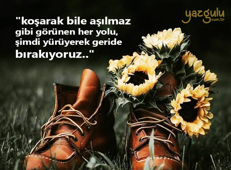 "koşarak bile aşılmaz gibi görünen her yolu, şimdi yürüyerek geride bırakıyoruz.."
