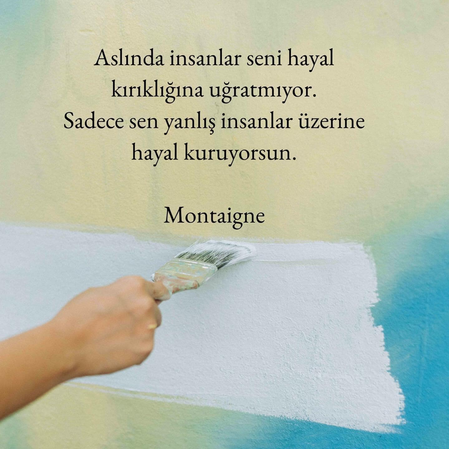 Aslında insanlar seni hayal kırıklığına uğratmıyor. Sadece sen yanlış insanlar üzerinde hayal kuruyorsun. Montaigne.