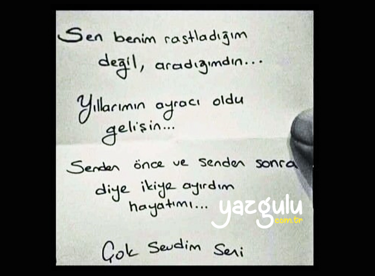 Sen benim rastladığım değil, aradığımdın! Yıllarımın ayracı oldu gelişin. Senden önce ve senden sonra diye ikiye ayırdım hayatımı. Çok sevdim seni.
