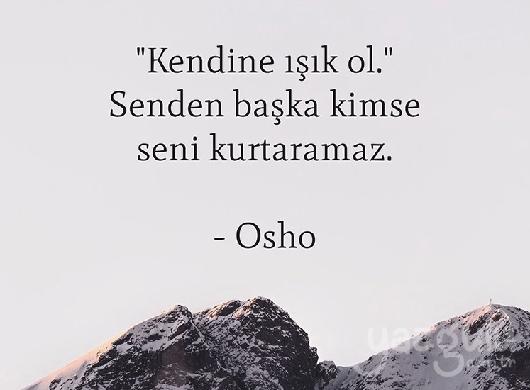 Kendine ışık Ol ki başkasının ışığıyla aydınlanmak durumunda kalmayasın. Kendine güven o ışık içindeki güçte mevcut onu açığa çıkar. "Kendine ışık ol." Senden başka kimse seni kurtaramaz. - Osho.