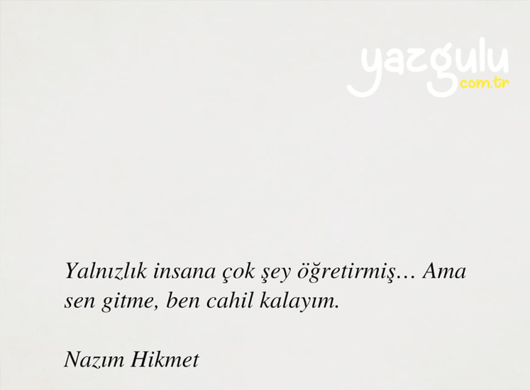 Yalnızlık insana çok şey öğretirmiş. Ama sen gitme, ben cahil kalayım..